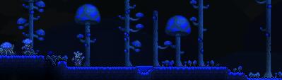 注:地面蘑菇群系会生成极强的怪物,像其他地形的困难模式一样。所以说这里推荐新玩家不要在出生点附近造地面蘑菇群系,等到拥有了强大的装备后再造不迟。
