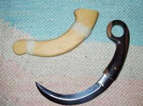 爪刀其实是一种历史相当悠久的刀具种类了,在11世纪的东南亚地区爪刀起初是作为农具和工具出现在了当地群众的生活当中。从形状上来看最初的爪子刀与我们农业上用的镰刀有比较类似的使用方法,但是爪子刀的尺寸和弧度相较镰刀都要小不少。起初的爪刀设计时基于虎爪的形状和曲线,因此爪刀除了一般刀具的功能外还具备了钩,割,切的功能。在东南亚地区的国家热带雨林密布,当地群众需要一把能同时满足农业上类似镰刀收割功能和切割劈砍功能的刀具,而爪子刀的出现很好的满足了当地人民的实际生活需要。爪子刀的结构与传统的刀具不太一样。它由刀尖,弧形刀身,内刃,外刃,弧形手柄以及安全指环(早期的爪子刀并没有这个设计)组成。从结构上爪子刀的弧形结构无疑是与传统刀具相比最为特殊的,弧形的刀身让它可以轻松的完成收割工作的同时可以像其他刀具一样完成其他应用。具有弧度的握把让使用者在使用时获得极佳的持握感,安全指环的设计是为了避免在使用爪刀时滑落以提高安全性。