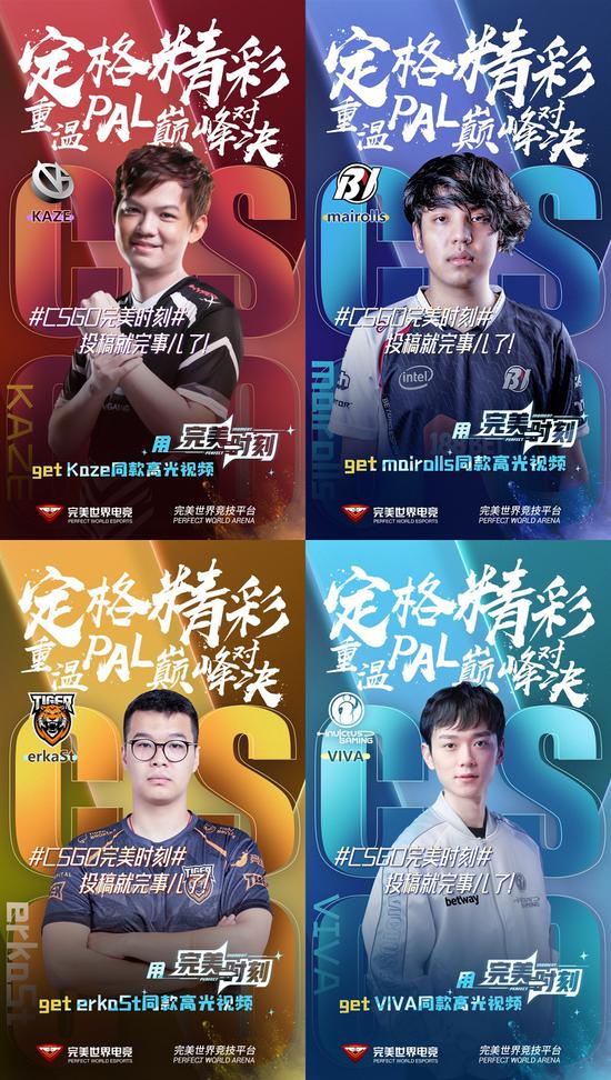 在不久前结束的百大完美时刻征集活动中,来自抖音、B站、微博等各大渠道的CS:GO知名视频博主,以及参加PAL的职业选手,都以这种方式记录下了他们在赛场上值得铭记的高光操作!同样,你也可以通过完美时刻一键生成同款精彩集锦!