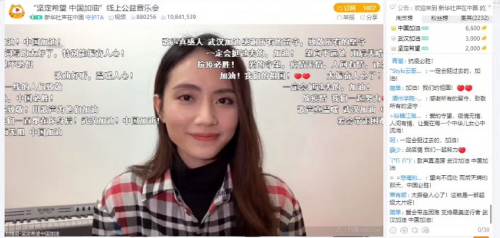 “这次的疫情牵动了所有人的心,向所有一线的英雄们致敬,向坚守在岗位的工作人员和支援者致敬!武汉加油,中国加油!”虎牙主播“丸子呦”在晚会直播间如是说。