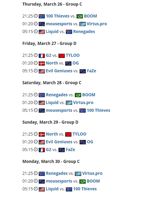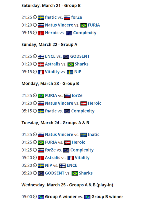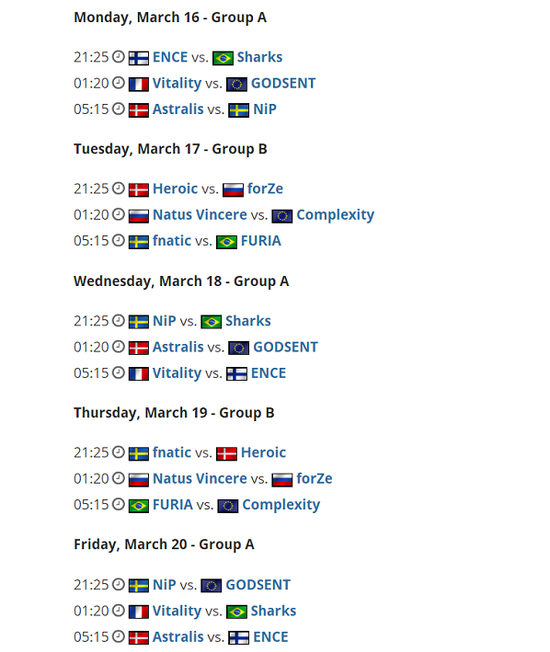 ESL官方宣布了EPL第11赛季小组赛的赛程,比赛将于3月16日开打,一直持续到4月4日,淘汰赛阶段由于疫情原因改在ESL欧洲的工作室进行。小组赛阶段四个小组将进行循环BO3,每组头名进入play-in比赛,胜者获得半决赛席位,每组2-3名晋级淘汰赛第一轮。