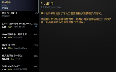 DOTA内置了工坊里玩家的自制攻略,它们往往非常详尽,但也受制于版本更新和环境动荡,往往没有那么即时,而Plus的出装建议采用机器学习给你出装和加点建议依据10个英雄来教你出针对装,参考了当前你的分段,出的频率最高、胜率最高的装备推荐,突出高胜率队伍的高频率选择,是成千上万比赛数据汇总后得出的方法论,当然它也有片面之处,好在Plus提供了3套不同风格的方案,可以根据你的需要和当前对局的实际情况切换,大数据加持,再因地制宜,助你胜利。