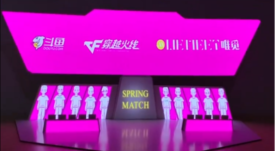 心细的小伙伴们应该已经发现了,每场比赛直播开始之前都会有一个“微舞台”。舞台的开场先向观众们展示穿越火线人物的精美手办,之后重头戏就来了,随着屏幕的滚动,斗鱼LOT-CF春季赏金赛的字样印入观众眼帘,十支参赛俱乐部的logo在屏幕上来回滚动,让观众一眼望去就能知道有哪些队伍参与了本次比赛。