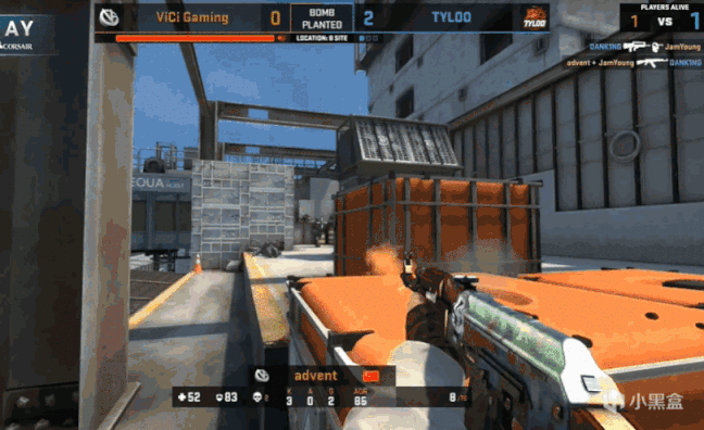 图三是Tyloo选择的Vertigo,VG主动选择进攻方开局。手枪局VG强扑连接夹A的战术在对枪环节落得下风。长枪局VG的开局抢点先掉2人,剩余土匪转B时枪法全部发挥,advent以一敌二刚下一分,并顺势将CT打入连续的ECO局,2-3。