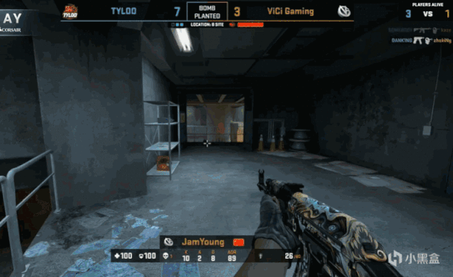 23局VG的B区强攻被补防到位的Summer双杀打停,2V4的残局JamYoung再次爆发,火拼2人抢下包点,下包后再刚Attacker拿到赛点。次局VG进A的首轮交火被Tyloo的非常规赌防打了个瓮中抓鳖,但kaze在1V2的残局里大胆摸烟,锁定敌人站位后1秒双杀赢下图一。
