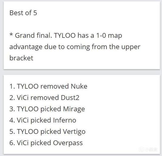DH夏季公开赛亚洲区迎来了最终决赛:Tyloo和VG两位老对手再次展开较量。VG靠着kaze和JamYoung的发挥连胜两图。图三Vertigo劣势开局的VG一度将比分追平,但却在对方的强起局中没能坚持住最后一口气惨遭惜败。决胜图VG在正面的较量中完全溃败,Tyloo轻取图四,逆转战胜VG赢得冠军。