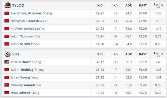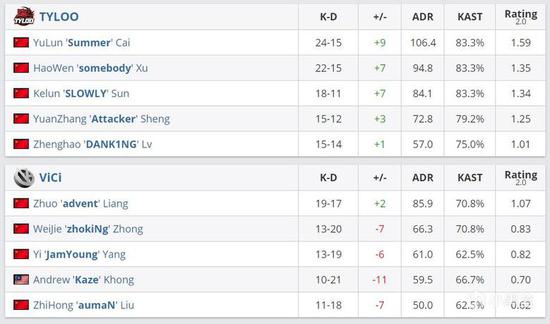 而此时人均经济不到3000的Tyloo毅然选择微冲抢A坡,抢点时虽然只做到3换2,但捡到AK的Summer却靠着精准压枪拿到双杀,1V1的残局SLOWLY用MP7爆头了advent,不仅先得赛点还反将VG经济扫空。终局混起的VG选择在A坡主动找机会,但太劣的枪械还是导致正面落败,16-14,Tyloo赢下图三。